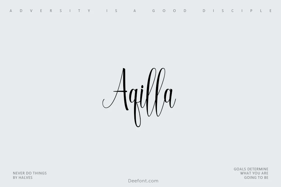 Aqilla is a modern calligraphy script font that combines elegant flowing curves with sophisticated handwritten charm. Created by Studiorazi, this versatile typeface features 227 glyphs with beautiful ligatures and stylistic alternates, supporting over 40 languages. Perfect for wedding invitations, elegant branding, logos, greeting cards, social media posts, and product packaging, Aqilla brings a touch of refined elegance to any design project. Its graceful letterforms and smooth connections make it ideal for projects requiring a feminine, romantic, or luxury aesthetic. The font’s delicate strokes and calligraphic style create stunning typography for both personal and commercial applications.