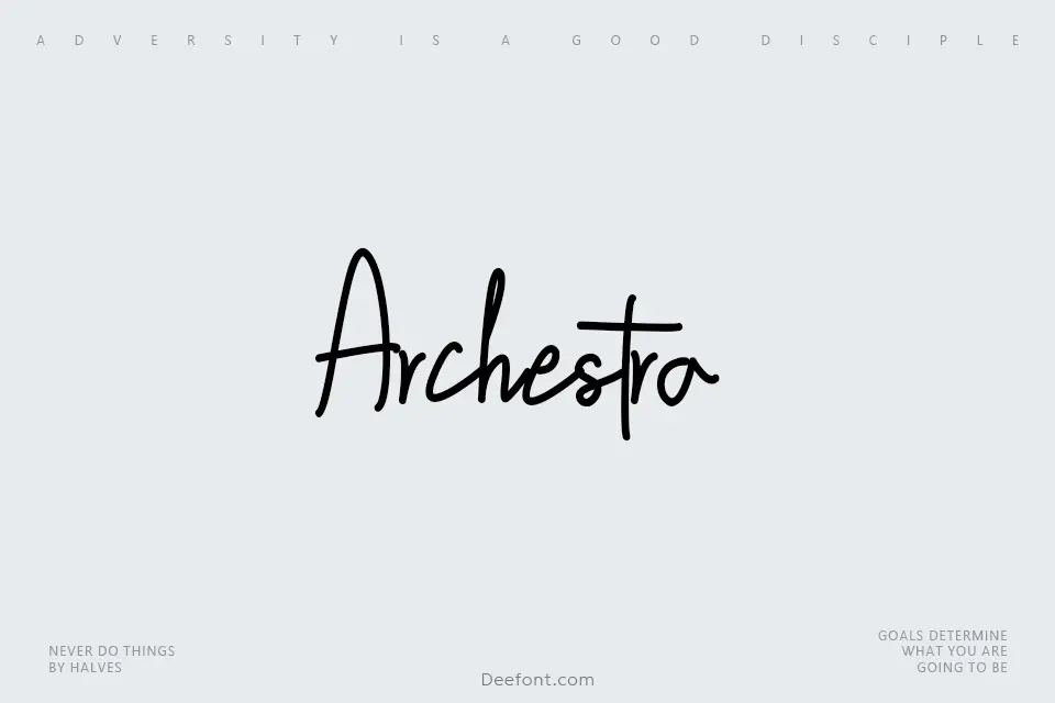 Archestra is an elegant monoline handwritten signature script featuring a unique flow with simple and organic letterforms. The font delivers sophisticated, flowing lines ideal for wedding invitations, greeting cards, personal branding, and creative projects requiring a refined, handwritten aesthetic. Its clean strokes and elegant proportions make it perfect for display typography, calligraphy-inspired designs, and premium stationery applications.