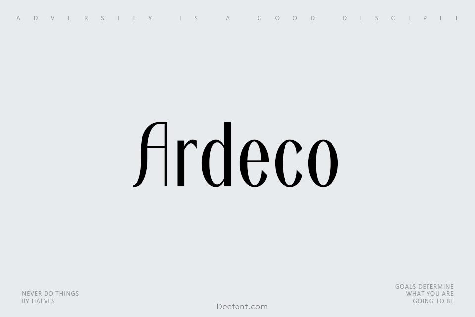 Ardeco is a distinctive Art Deco and Vintage-inspired display sans serif font that combines elegance with playfulness. Created by talented designers Irina Chukina and Jovanny Lemonad, this typeface features streamlined geometric forms and bold lines characteristic of the Art Deco movement. With its exaggerated proportions and sophisticated details, Ardeco is perfect for invitations, logos, posters, packaging, and any project requiring a touch of vintage charm and modern sophistication. The font’s versatility and legibility make it an excellent choice for both contemporary and classic designs.