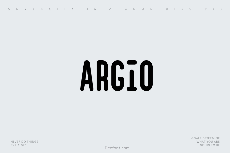 Argio is a fancy sans serif font featuring geometric and calm aesthetics, designed for headlines and logos. This versatile typeface includes optional stencils, multiple styles (Light, Regular, Bold, Shadow, Rough), and decorative ligatures that create unique eyecatchers. With its contemporary geometric design and flexibility across various weight options, Argio delivers distinctive visual impact for creative typography projects.