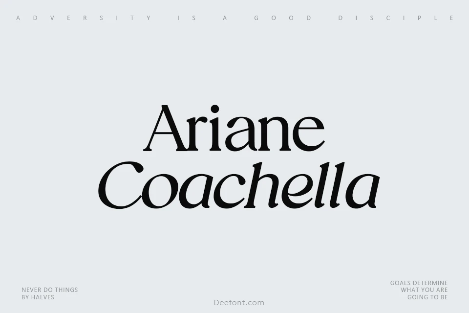 Ariane Coachella Font Family is a modern serif typeface designed by UICreative, blending elegance with playful geometric elements. Characterized by sharp points, subtle ink traps, and a mix of traditional and contemporary serif forms, it offers a versatile aesthetic suitable for both masculine and feminine branding. The font family includes nine weights, from Thin to Extra Bold, with italic variants, ensuring flexibility for headlines, logos, packaging, or editorial design. Its extensive Latin character support and multilingual glyphs make it adaptable for global projects. While free for personal use, commercial applications require a license. Ideal for fashion, luxury branding, or artistic layouts, Ariane Coachella balances sophistication with dynamic visual impact.