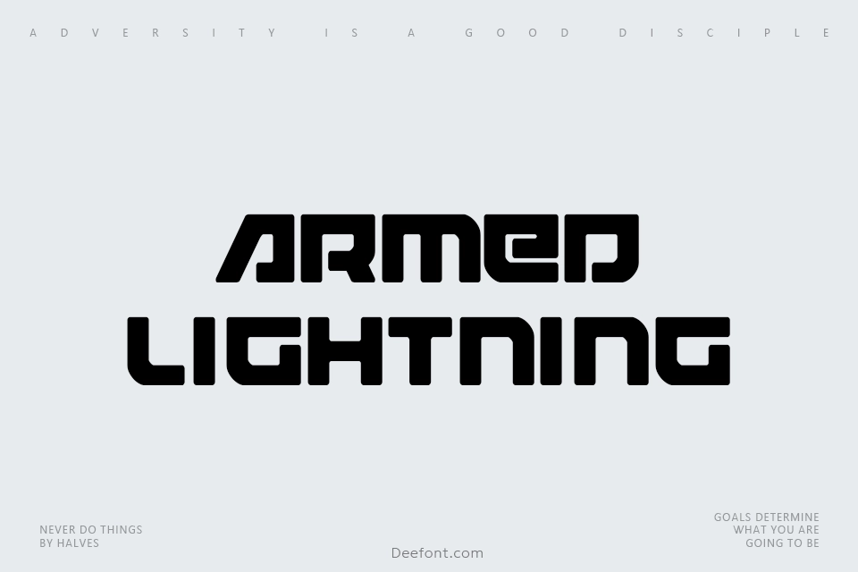 Armed Lightning Font is a bold, dynamic display typeface featuring sharp angles and intersecting lines that deliver a futuristic and edgy aesthetic. With 27 distinctive styles including gradient, chrome, laser, and 3D variations, this versatile techno-sci-fi font excels in high-impact designs such as logos, branding, posters, titles, and headlines. The font’s strong geometric construction and expanded width make it perfect for projects demanding attention-grabbing visual presence. Its modern, electrifying character brings contemporary energy to both digital and print applications, offering extensive customization options for diverse creative endeavors.