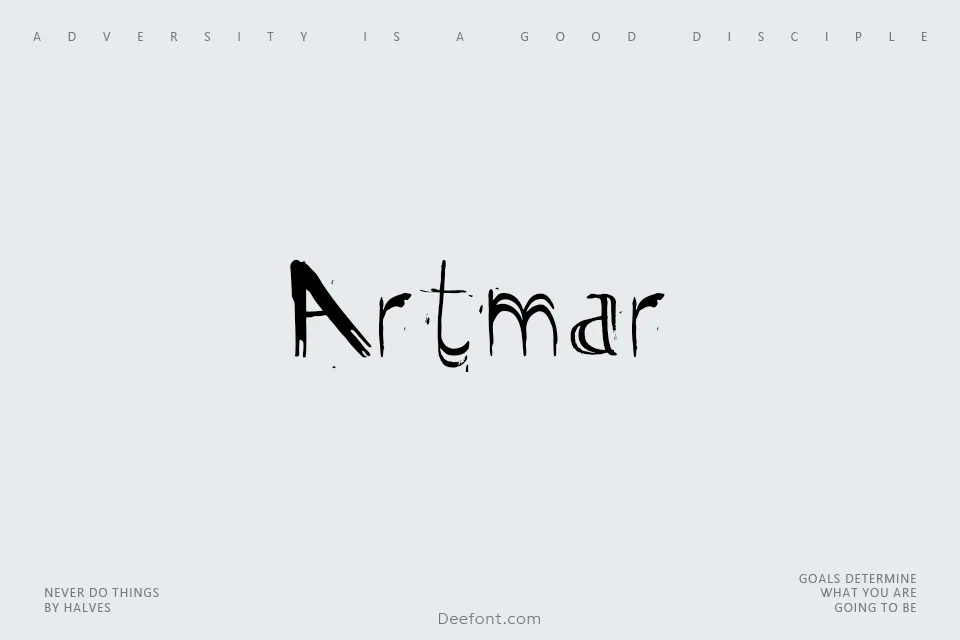 Artmar is a daring handwritten display font created with Indian ink on paper and digitized for modern use. This bold typeface features authentic, hand-drawn characteristics with distorted elements that bring a raw, organic feel to any design project. Perfect for media posts, logos, greeting cards, branding materials, and creative typography projects, Artmar combines the natural imperfections of handwriting with digital versatility.