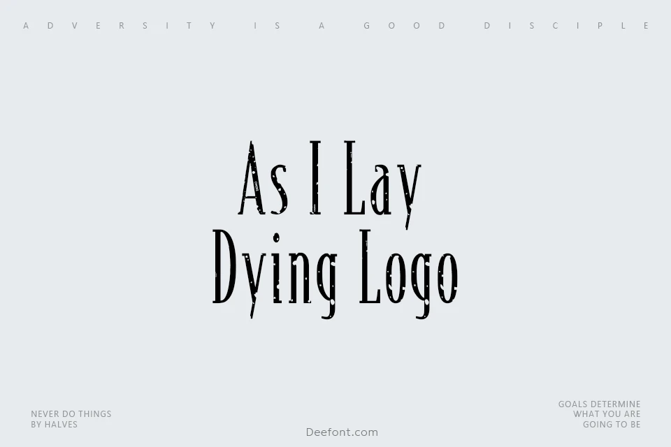 The As I Lay Dying Logo Font is a tribute typeface inspired by the iconic logo of the metalcore band As I Lay Dying. Designed by LJ Design Studios in 2015, this font features tall, narrow letterforms with a distressed, gothic aesthetic that captures the intense and dramatic style of the band’s branding. Ideal for music-related artwork, posters, and creative projects seeking a bold and edgy look, this font is available for personal use only.