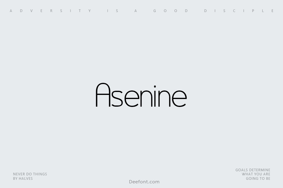 Asenine is a clean, minimalist sans-serif typeface designed by Graham Meade through Apostrophic Labs. This versatile font family includes four distinct styles: regular, thin, super thin, and wide. With support for 39 languages and 219 glyphs including Latin, Greek, Cyrillic characters, and special symbols, Asenine delivers both flexibility and elegance. Perfect for modern design projects, this typeface excels in headlines, logos, and branding applications where clarity and contemporary aesthetics are paramount.