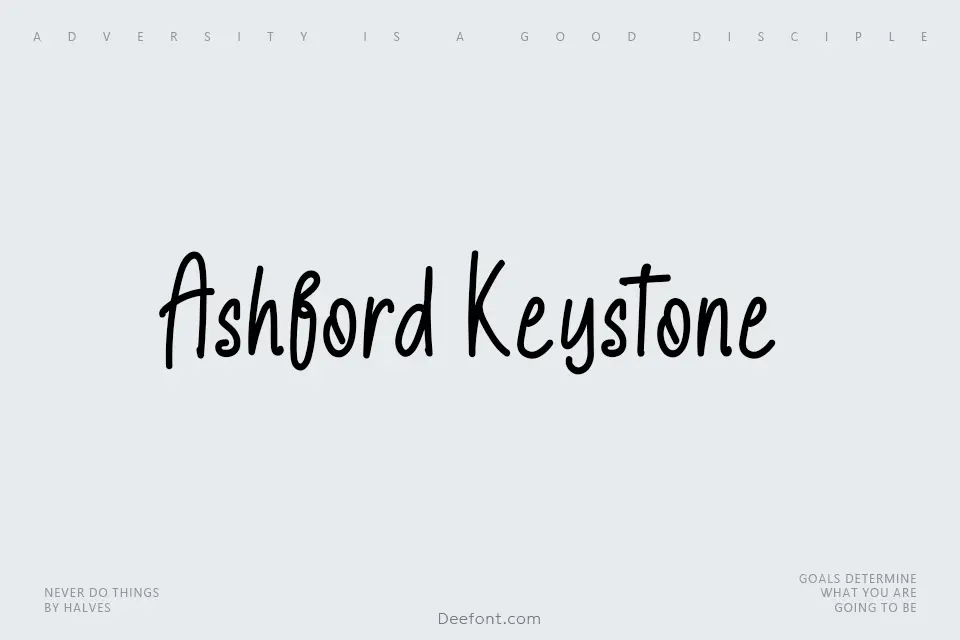 Ashford Keystone Font is a delightful handwritten script designed by Denny Sutanto. With its fluid strokes and cheerful energy, this modern display typeface transforms wedding invitations, logos, and social media posts into eye-catching works of art. The soft, casual aesthetic of the font makes it an ideal choice for branding projects requiring a personal, authentic touch.