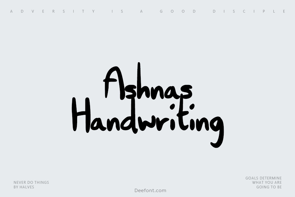 Ashnas Handwriting is a casual and modern handwritten font designed to add a personal touch to your creative projects. Perfect for greeting cards, crafty DIYs, scrapbooks, and various design needs, this charming typeface features flowing natural letterforms that bring warmth and personality to any project. Its approachable style makes it ideal for personal and friendly designs.