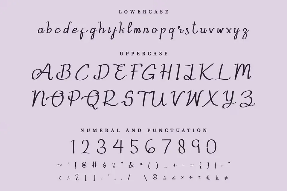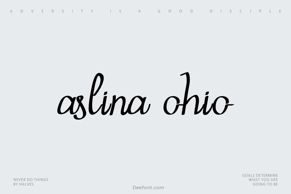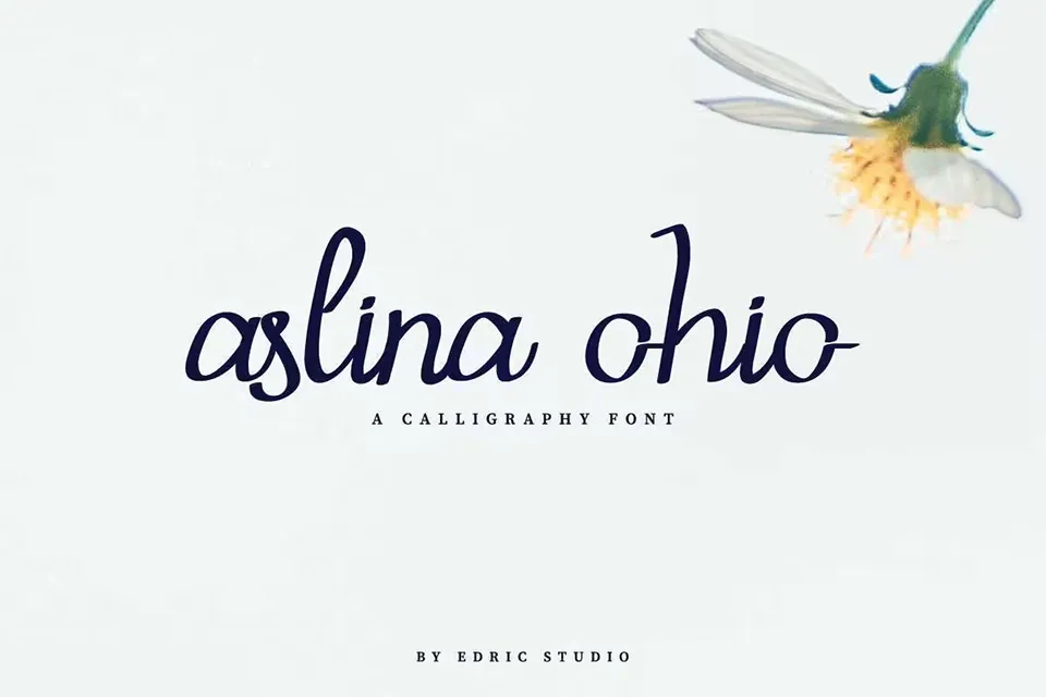 Aslina Ohio Calligraphy Font is an exclusive calligraphy script typeface with a brush style, featuring a stunning character set that is perfectly managed for elegant and creative design projects. Designed for versatility, it brings a charming and handcrafted touch to your typography.