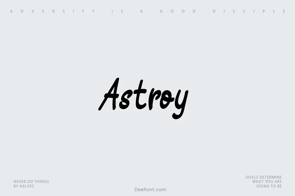 Astroy is an elegant handwritten script font that captures the natural beauty of authentic brush lettering with flowing, organic strokes and characteristic pen-drawn imperfections. This typeface combines calligraphic sophistication with casual charm, making it ideal for wedding invitations, decorative posters, greeting cards, product labels, and artistic branding projects. The font’s irregular baseline and varying stroke weights create genuine personality and warmth, perfect for design projects requiring a personal, human touch. Astroy works exceptionally well as a headline or accent font in contemporary design, packaging, editorial layouts, and social media graphics where authentic handwriting aesthetics enhance visual appeal.****I really appreciate your donations****Donate to : anass.qara@gmail.com
