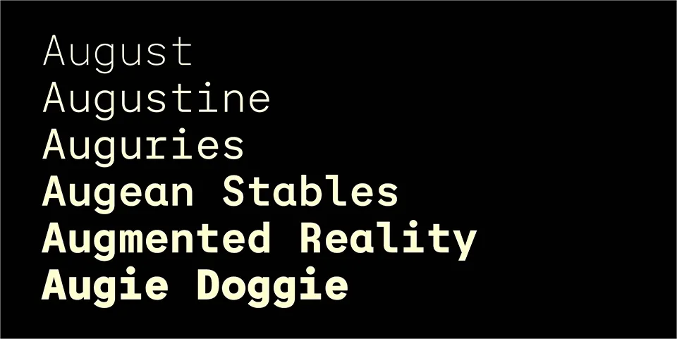 The Auger Mono Font Family is a versatile monospace typeface inspired by the Myriad font, widely used by technology companies and governments since the 1990s. It features six weights, from X-Light to Black, and offers a range of stylistic alternates, allowing for both practical and geometric expressions. Drawing influences from old Leroy lettering templates, Fortunato Depero’s Bolted Book, and classic grotesk jobbing faces, Auger Mono combines open proportions with a workmanlike construction, ensuring balance and readability even in its most distinctive forms.