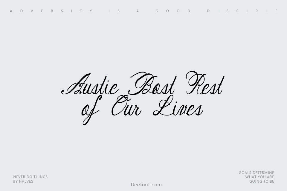 Austie Bost Rest of Our Lives is an elegant and flowing calligraphy script font designed for creative projects seeking a touch of sophistication. This versatile typeface features beautiful, handwritten-style letterforms perfect for invitations, greeting cards, wedding designs, and artistic endeavors. With 232 carefully crafted characters and smooth, expressive strokes, the font combines contemporary flair with timeless charm, making it an excellent choice for adding personal elegance to your typography needs.