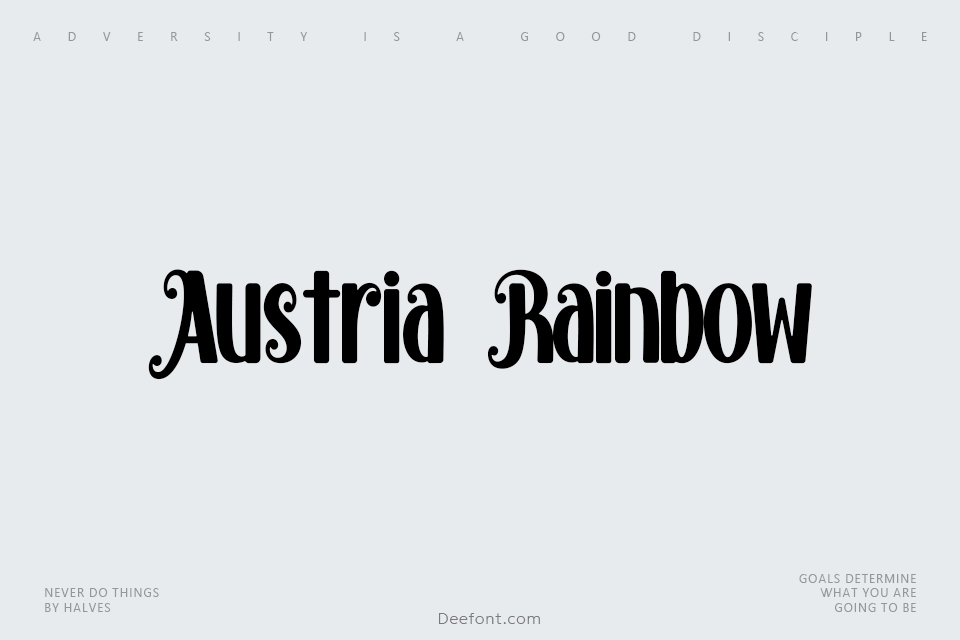Austria Rainbow is a vibrant groovy display font designed by Hoperative that brings retro charm and playful energy to your creative projects. With its bold, semi-condensed letterforms and eye-catching style, this font excels at headlines, signage, and eye-catching branding applications. Perfect for adding a touch of nostalgic flair to posters, album covers, and decorative typography that demands attention and personality.