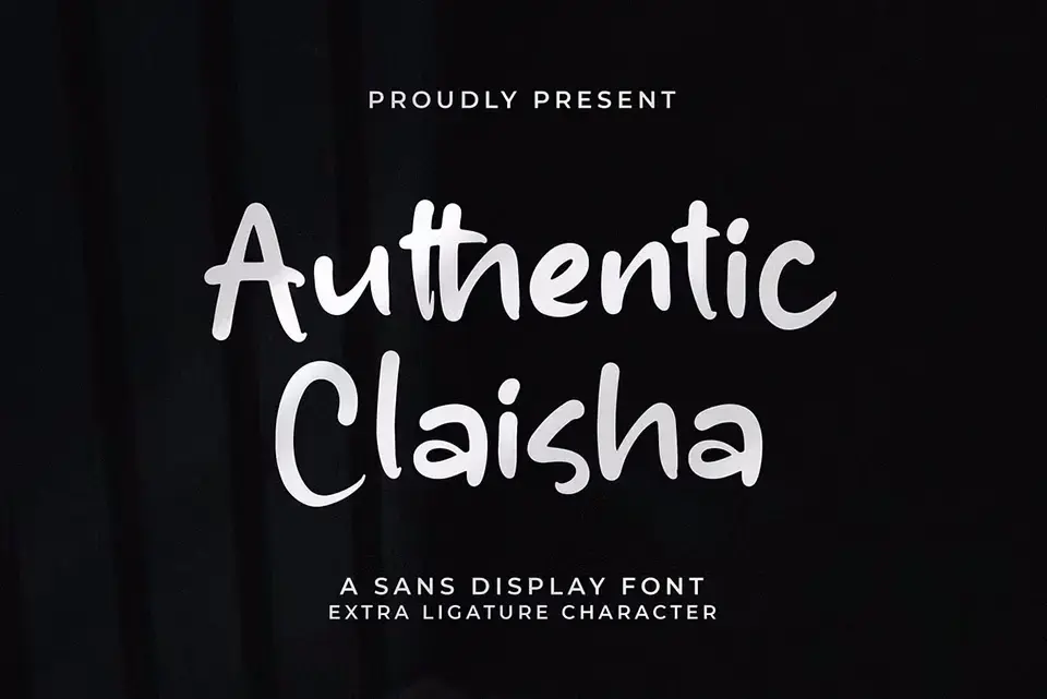 Authentic Claisha is a flowing handwritten script font featuring organic, casual letterforms with a relaxed and approachable character. Designed by Integritype Studio, this typeface delivers an authentic, hand-crafted aesthetic ideal for personal projects, greeting cards, social media posts, invitations, banners, magazine covers, and posters. With 245 glyphs including accents and Euro support, the font combines modern versatility with warm, humanistic appeal. Its smooth strokes and natural letterforms evoke contemporary calligraphy while maintaining excellent readability across various design applications and screen displays.