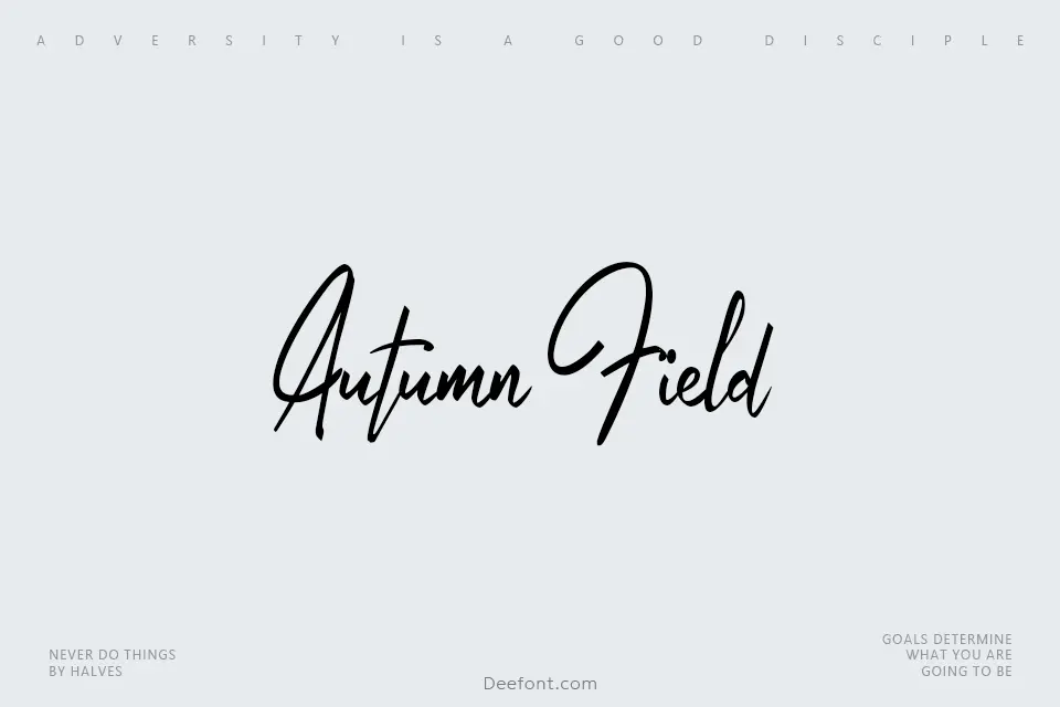 Autumn Field is a captivating handwritten script typeface with flowing, organic calligraphic strokes that exude elegance and sophistication. Featuring unique line curves and stylistic variations, this font captures the essence of bespoke handwriting. Ideal for luxury branding, poster design, magazine layouts, packaging, and decorative applications, it adds a personal, artistic touch to any creative project while maintaining excellent readability.