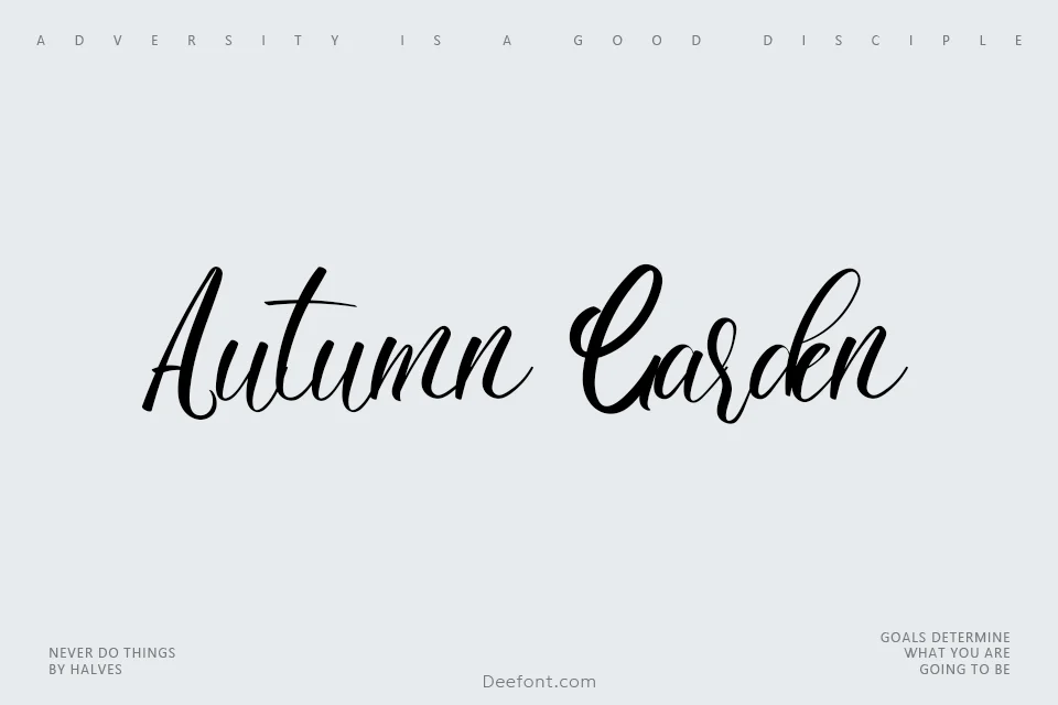 Autumn Garden is an enchanting script font that brings a playful and calligraphic touch to any creative project. Designed by FreshtypeINK, this versatile display typeface features flowing letterforms with elegant curves and artistic strokes that capture the essence of hand-drawn lettering. The font showcases beautiful script characteristics with smooth, organic shapes reminiscent of garden-inspired aesthetics. Perfect for invitations, branding, logos, social media graphics, and decorative designs, Autumn Garden adds a whimsical yet sophisticated charm to headlines and titles. Its distinctive personality combines creativity with readability, making it an excellent choice for projects that require both visual appeal and authentic handcrafted feel.