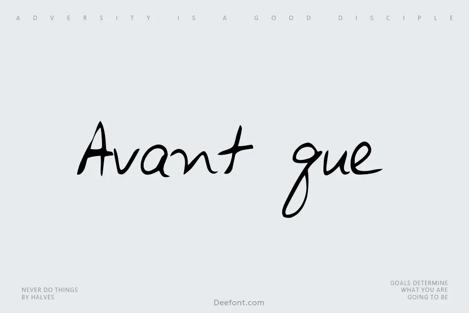 Avant que… is a dynamic handwritten script typeface featuring fluid, naturally slanted letterforms that evoke authentic pen strokes. With its lively cursive character and sketchy-inspired aesthetics, this font excels at creating eye-catching titles, decorative headings, and artistic displays. Its organic curves and playful energy make it particularly suited for posters, greeting cards, invitations, and projects requiring personal, creative typography. The typeface captures a spontaneous, handwritten quality that brings warmth and character to headlines and prominent display text, making it a popular choice for designers seeking an authentic human touch in their visual communications.
