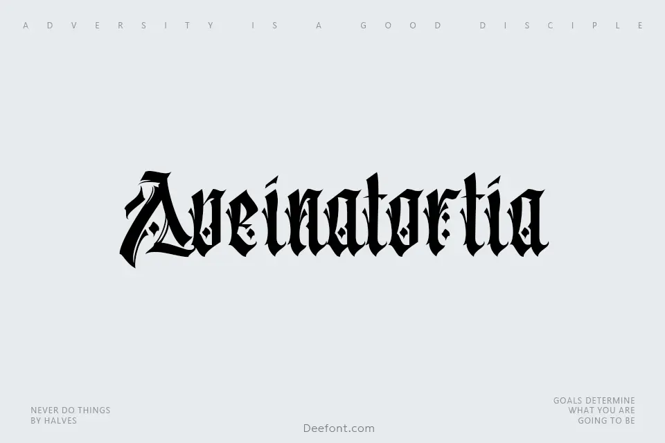 Aveinatortia is a captivating blackletter-inspired graffiti font featuring bold, angular letterforms blended with modern urban aesthetics. Its striking design combines gothic influences with decorative ornaments, creating a visually arresting typeface ideal for headline text, logos, and branding materials. With its condensed width and edgy character, Aveinatortia delivers raw urban energy perfect for editorial layouts, fashion brands, and street-inspired creative projects seeking distinctive visual impact.