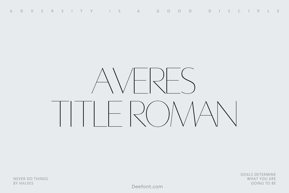 Averes Title Roman Font is a sharp and sophisticated geometric sans typeface designed for impactful titling and display purposes. With its clean lines, modern aesthetic, and refined proportions, this font is perfect for creating striking headlines, logos, branding, and editorial designs. Averes Title Roman offers three versatile weights and includes an array of stylistic discretionary ligatures, accented variants, and multilingual support, ensuring flexibility for diverse creative needs. Its sleek and elegant design exudes professionalism while maintaining a contemporary edge. Whether used for bold statements or subtle details, Averes Title Roman Font elevates your designs with style and precision.