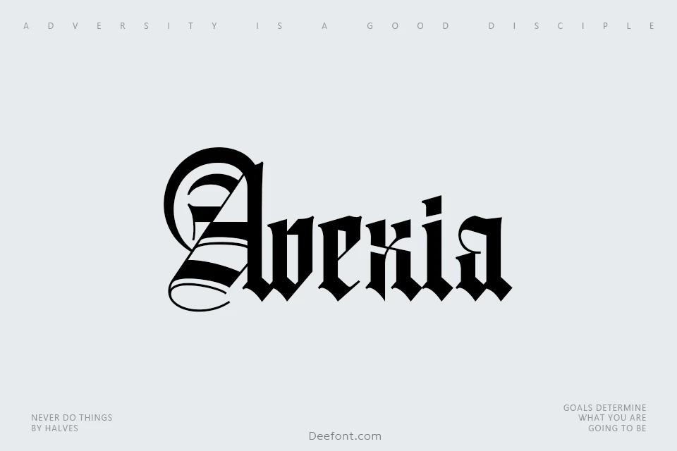 Avexia Font is a bold and authentic blackletter typeface designed to make your creative projects stand out. With its daring, thick letterforms and classic Gothic influences, Avexia is perfect for branding, headlines, posters, and any design that demands a dramatic and vintage touch. Experience the versatility and charm of this unique blackletter font in your next project.