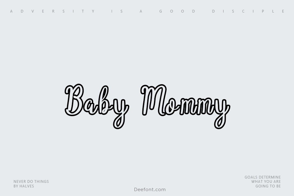Baby Mommy is a charming script typeface designed by Shiddiq Art, perfect for adding a warm, personal touch to your creative projects. This handwritten-style font features flowing letterforms ideal for wedding invitations, social media posts, product packaging, and decorative designs. With over 33,000 downloads, Baby Mommy brings an elegant yet playful aesthetic to wall displays, labels, and branding materials, making it an excellent choice for projects requiring taste and contemporary handwriting styles.