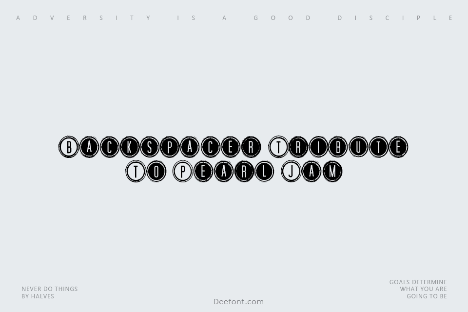 The Backspacer Tribute To Pearl Jam font is a distinctive decorative typeface featuring bold, circular characters enclosed within a striking double-lined border. Inspired by Pearl Jam’s iconic album artwork, this display font combines modern aesthetics with a grunge-influenced design. With 266 glyphs and support for 41 languages, it delivers a unique visual impact perfect for creative projects, posters, and headline designs. The font’s heavy load characteristics ensure maximum visual presence in any typography application.