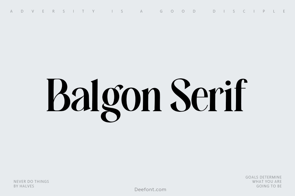 Balgon Serif is a distinctive neoclassical serif typeface with high contrast and subtle elegance, combining feminine charm with glamorous simplicity for exceptional readability. Designed with alternative fonts and ligatures, it perfectly suits formal applications including invitations, labels, menus, logos, fashion designs, stationery, wedding cards, and packaging projects seeking sophisticated visual impact.