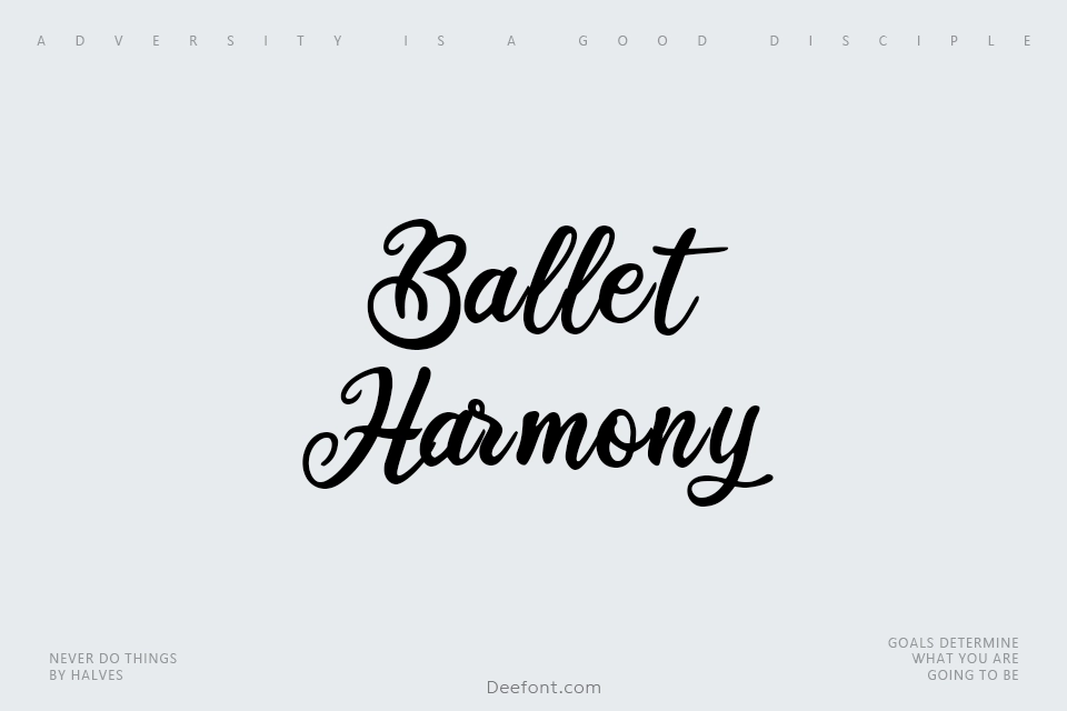 Ballet Harmony is an elegant calligraphy font designed by cove703, featuring graceful flowing strokes and sophisticated character design. This free, versatile typeface combines delicate flourishes with refined letterforms, making it perfect for wedding invitations, greeting cards, and upscale personal branding projects. With its expressive calligraphic style and premium aesthetic, Ballet Harmony brings a touch of elegance and timeless beauty to any creative design, from elegant stationery to decorative display text and artistic compositions.