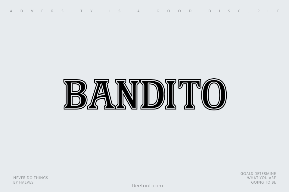 Bandito is a bold and expressive display font that captures the spirit of the Wild West with its distinctive character and personality. This free typeface features a unique geometric construction softened by classic wood type influences, making it perfect for headlines, posters, and creative branding projects. With its striking letterforms and dynamic presence, Bandito delivers authentic Western charm to any design application, ideal for designers seeking a memorable typeface with distinctive personality and versatile creative applications.