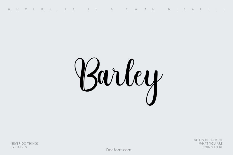 Barley is an elegant semi-light calligraphy typeface designed with fluid, sweeping curves that bring sophistication to any creative project. This handcrafted script font perfectly combines the delicate beauty of handwriting with professional typeface clarity. With its balanced weight and refined aesthetic, Barley excels in invitations, branding, editorial design, and logo projects where a personal, elegant touch is desired. The font’s versatile nature suits wedding stationery, packaging, special events, and any design requiring an upscale handwritten feel. Its hundreds of glyphs and extensive language support make Barley an ideal choice for designers seeking both visual impact and functionality in their typography needs.