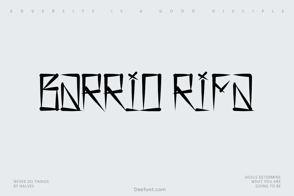 Barrio Rifa is a dynamic graffiti and tattoo typeface inspired by urban culture and gang lettering styles, specifically rooted in the Chicano/Cholo aesthetic. Designed by Richie Mx, this striking Script font features bold, angular characters with sharp edges and rebellious energy, making it ideal for streetwear branding, music album covers, urban-themed designs, and graffiti art projects. With 236 glyphs and distinctive letterforms that capture the essence of street art, Barrio Rifa brings authentic urban character to headlines, logos, and creative projects seeking an edgy, contemporary visual impact.