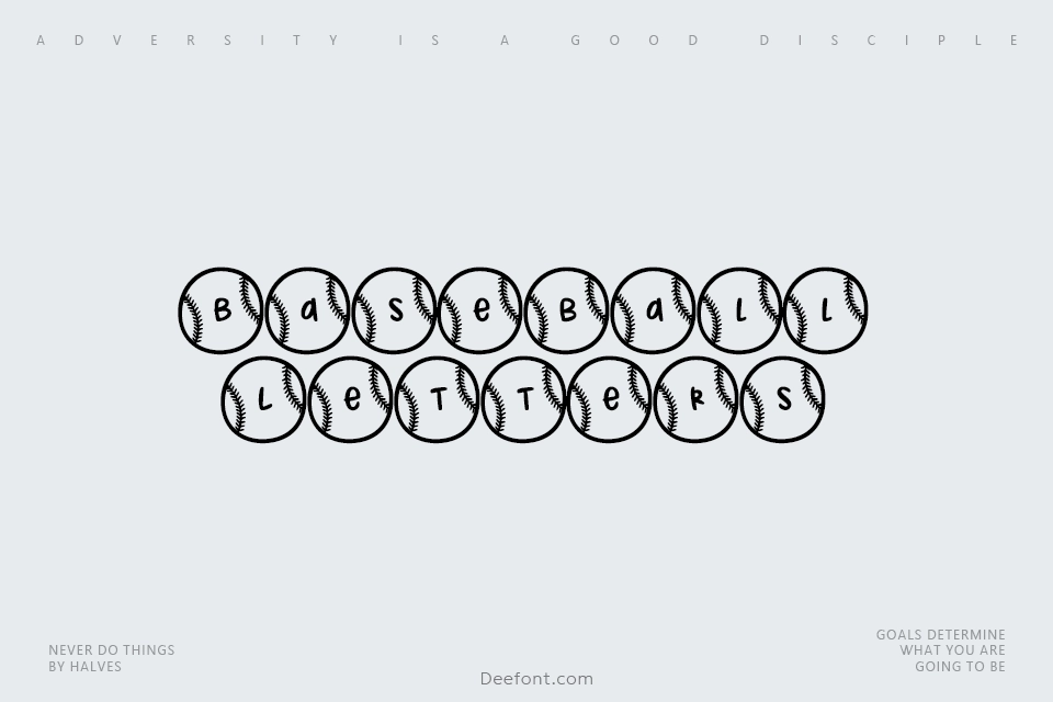 Baseball Letters is a playful display font designed by Brittney Murphy that brings team spirit and sports enthusiasm to your creative designs. Perfect for baseball-themed projects, birthday parties, and sports applications, this decorative typeface features charming baseball-inspired letterforms. With its fun and whimsical character, it’s ideal for adding energy and personality to headlines, logos, and eye-catching graphics that celebrate the spirit of America’s favorite pastime.