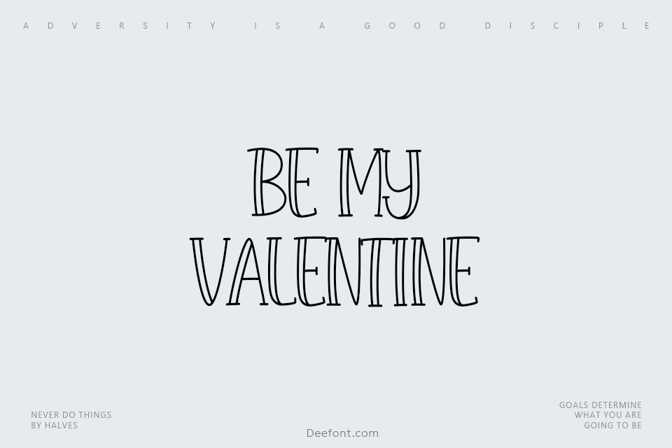 Be My Valentine is a charming and romantic outlined typeface created by Graphix Line Studio. Perfect for love-themed designs, this semi-light, whimsical font features elegant looped and swirly characters that add sweetness to any project. Ideal for Valentine’s Day greeting cards, wedding invitations, social media graphics, and playful branding, Be My Valentine brings a touch of romance and sophistication to creative work.