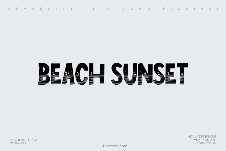 Beach Sunset is a captivating decorative display font that brings a touch of coastal magic to your creative projects. This bold and playful typeface features unique striped patterns reminiscent of beach landscapes, making it an eye-catching choice for any aesthetic endeavor. Whether you’re creating wedding invitations or crafting compelling logos, Beach Sunset seamlessly blends elegance with creativity. Perfect for blog headers, book covers, stationery designs, and branding efforts, this font adds a distinctive flair to any visual communication. Ideal for marketing materials and creative projects seeking unforgettable visual impact.