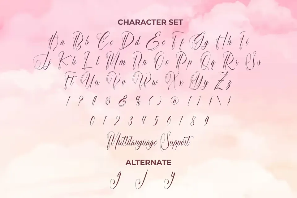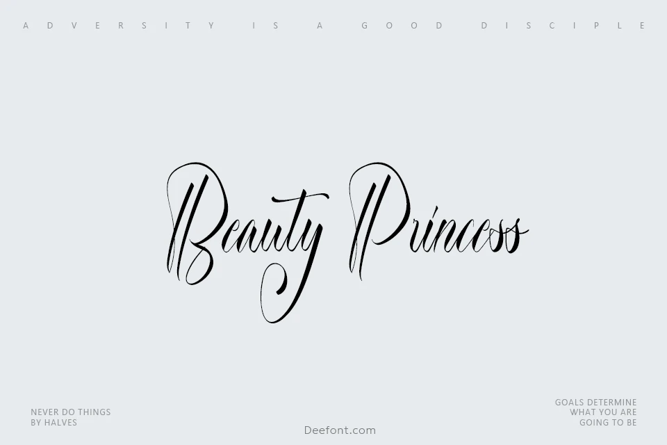 Beauty Princess Font is a beautiful script font featuring a stylish and royal touch. Carefully crafted for elegance and versatility, this font offers a radiant princess aura, making it perfect for industries such as accessories, beauty clinics, boutiques, cosmetics, event organizers, fashion, florists, homeware, jewelry, perfume brands, publishing, restaurants, skincare, spa salons, and more. It includes uppercase and lowercase characters, numbers, punctuation, alternates, and ligatures, supporting multilingual use and OpenType features. Beauty Princess Font is ideal for birthday cards, brand logos, invitations, packaging, signage, and a variety of creative projects.