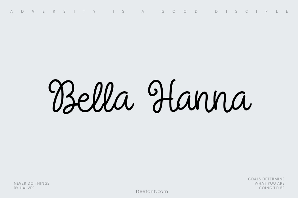 Bella Hanna is a cute and quirky script display font that brings a joyful and elegant touch to creative designs. This flowing typeface features smooth, connected strokes with beautifully curved uppercase letters, making it perfect for typography projects that need personality and charm. Created by Lettersiro Studio, this charming font works wonderfully for invitations, branding, social media graphics, and decorative applications that demand visual interest and creative flair.