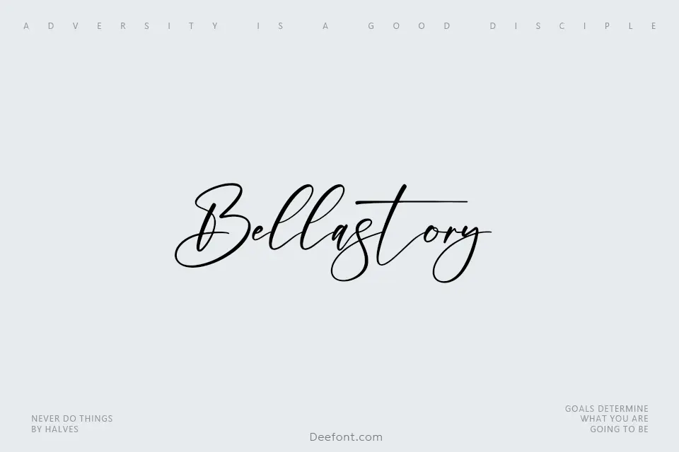 Bellastory is a modern signature script font featuring refined, flowing letterforms with elegant handwritten characteristics. This polished typeface delivers sophisticated calligraphy strokes ideal for logos, brand identity, product packaging, invitations, greeting cards, posters, and wedding designs. With 247 carefully crafted characters including accents and special glyphs, Bellastory brings elegant charm and professional polish to any creative project requiring handwritten-style typography.