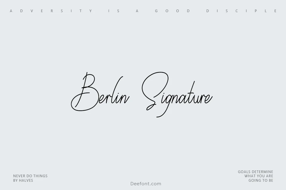 Berlin Signature is an elegant handwritten signature font designed with flowing strokes that capture the natural grace of pen-to-paper writing. Perfect for personal branding, wedding invitations, and sophisticated typography projects, this script font brings a refined, professional touch to any creative endeavor requiring a personalized aesthetic.