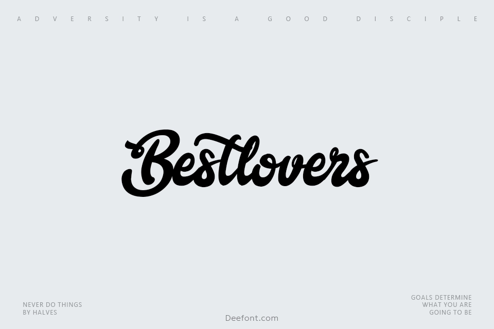 Bestlovers is a bold and flowing script typeface featuring elegant, sweeping curves and decorative flourishes. The uppercase letters showcase sophisticated loops and swashes, while lowercase characters maintain consistent readability with stylish flair. Perfect for wedding invitations, branding, logo design, and decorative projects requiring creative elegance and artistic appeal.