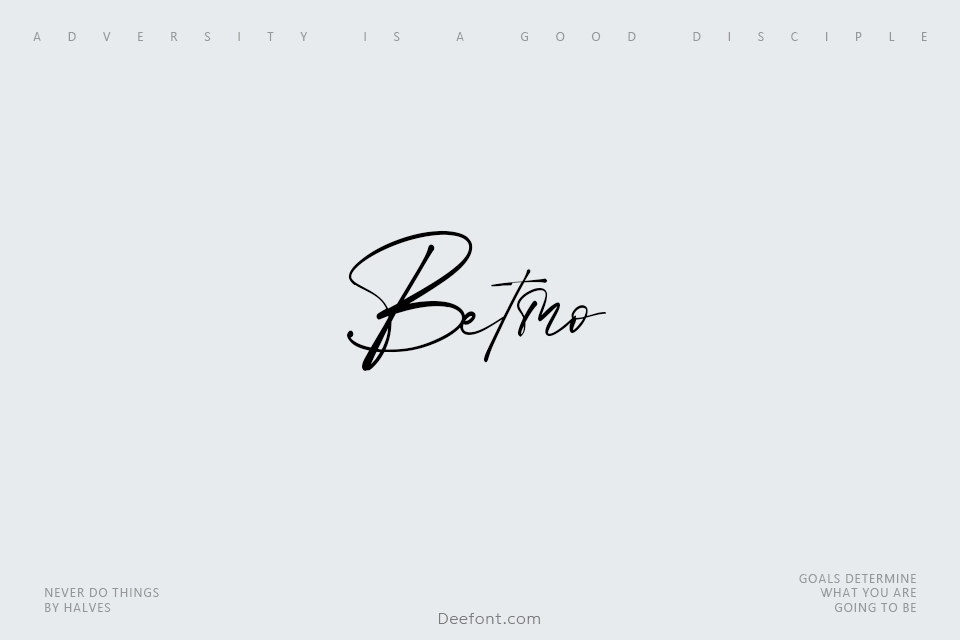 Betmo is a glorious contemporary script font inspired by luxury fashion, featuring beautiful ligatures and alternates for sophisticated designs. Perfect for branding, magazine layouts, wedding invitations, logos, and product packaging, this elegant handwritten typeface elevates creative projects with its refined and flowing characteristics.