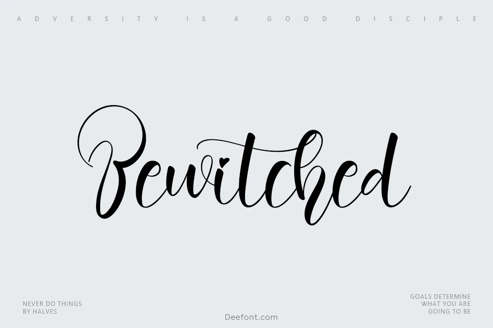 Bewitched Font is a sleek handwritten script font with remarkably attractive letters and a modern, whimsical look. It is perfectly suitable for logos, product packaging, letters, cards, marketing materials, books, and a wide range of creative projects, bringing a touch of elegance and charm to any design.