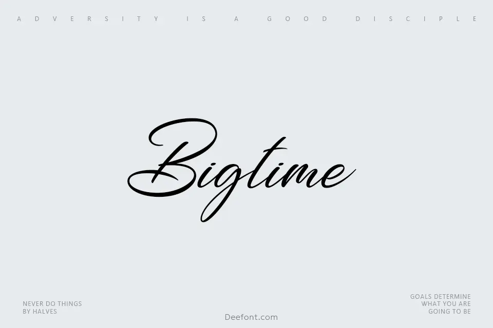 Bigtime is a sophisticated script typeface that combines natural elegance with modern luxury styling. Featuring fluid letterforms, decorative swashes, and distinctive alternates, this handwritten-inspired font delivers bold personality ideal for premium branding projects, luxury packaging, event invitations, and eye-catching poster designs. With multilingual support and PUA encoding, it transforms ordinary typography into sophisticated visual identities.
