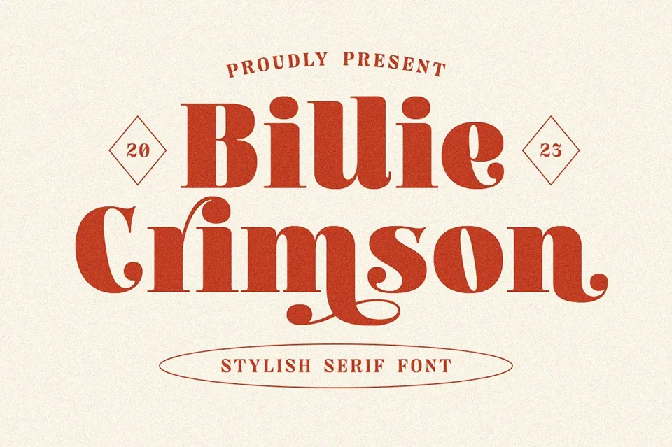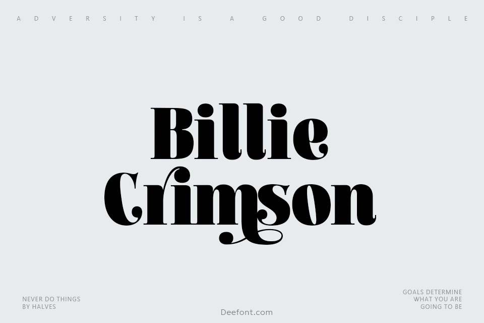 Billie Crimson Serif Font is a stylish and classic serif typeface designed to exude elegance and timelessness. With its refined curves, alternate characters, and sophisticated look, this font is perfect for a wide range of design projects, including logos, invitations, labels, magazines, books, greeting cards, packaging, fashion, makeup, stationery, and advertising. The font is PUA encoded, allowing easy access to all glyphs and ligatures, and is ideal for designers seeking to add a touch of sophistication and uniqueness to their creations.