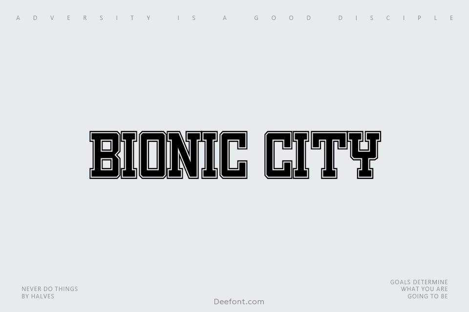 Bionic City is a bold and authentic slab serif display font designed for maximum impact. With its strong, blocky letterforms and cool contemporary style, this typeface excels in sports design, racing graphics, and athletic branding. Perfect for creating eye-catching headlines, magazine titles, posters, and any project requiring commanding visual presence. The font features robust geometric proportions that work beautifully at large sizes while maintaining readability across various applications from print to digital media.