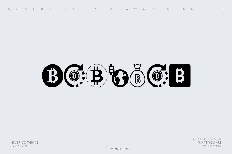 Bitcoin is a free dingbat typeface designed by Spanish graphic designer Woodcutter, featuring 236 expertly vectorized glyphs. Perfect for cryptocurrency branding and display projects, this versatile icon font combines professional quality with accessibility. Whether you’re creating logos, posters, or digital designs, Bitcoin Font delivers distinctive visual impact with its compiled and polished presentation. Ideal for designers seeking creative typographic solutions without licensing constraints.