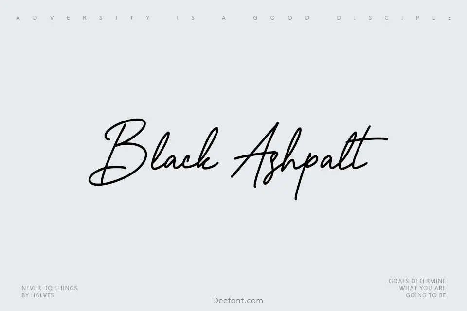Black Ashpalt is a refined monoline signature script font that combines contemporary elegance with handwritten character. Its uniform stroke weight creates clean, flowing letterforms ideal for logo design, branding projects, posters, invitations, and display typography. With distinct rounded terminals and consistent letterforms, the font delivers a modern yet approachable aesthetic suitable for creative campaigns, packaging design, social media graphics, and fashion-forward applications. The balanced proportions ensure excellent readability while maintaining visual sophistication.