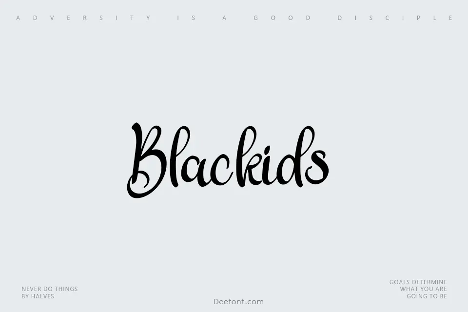 Blackids is a charming handwritten display font that combines fluid brush strokes with bold, contemporary aesthetics. Featuring flowing cursive letterforms with organic hand-drawn qualities, this font delivers an elegant yet playful personality ideal for posters, headers, invitations, and creative branding projects that demand visual impact and authentic character.