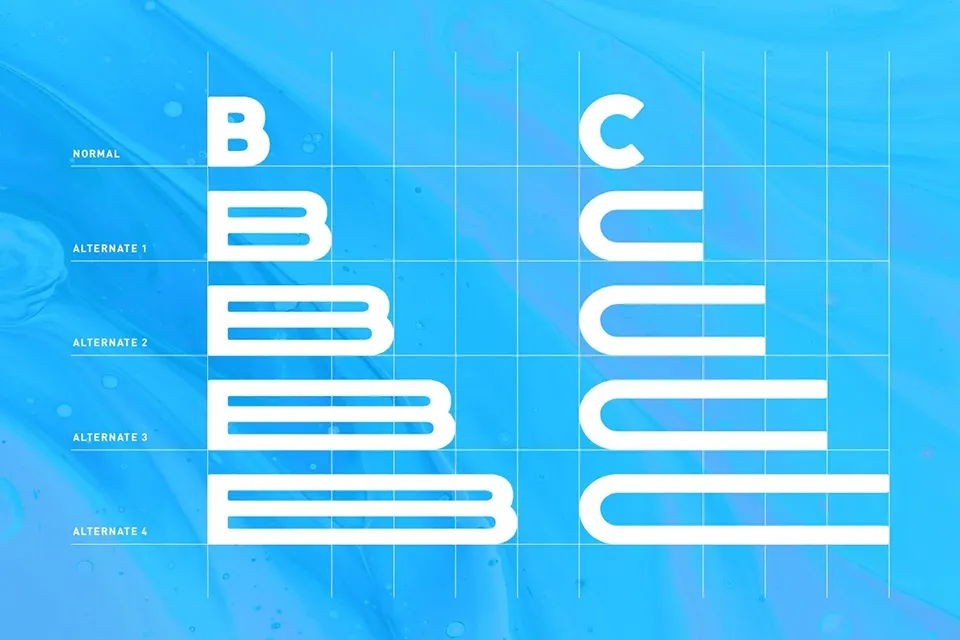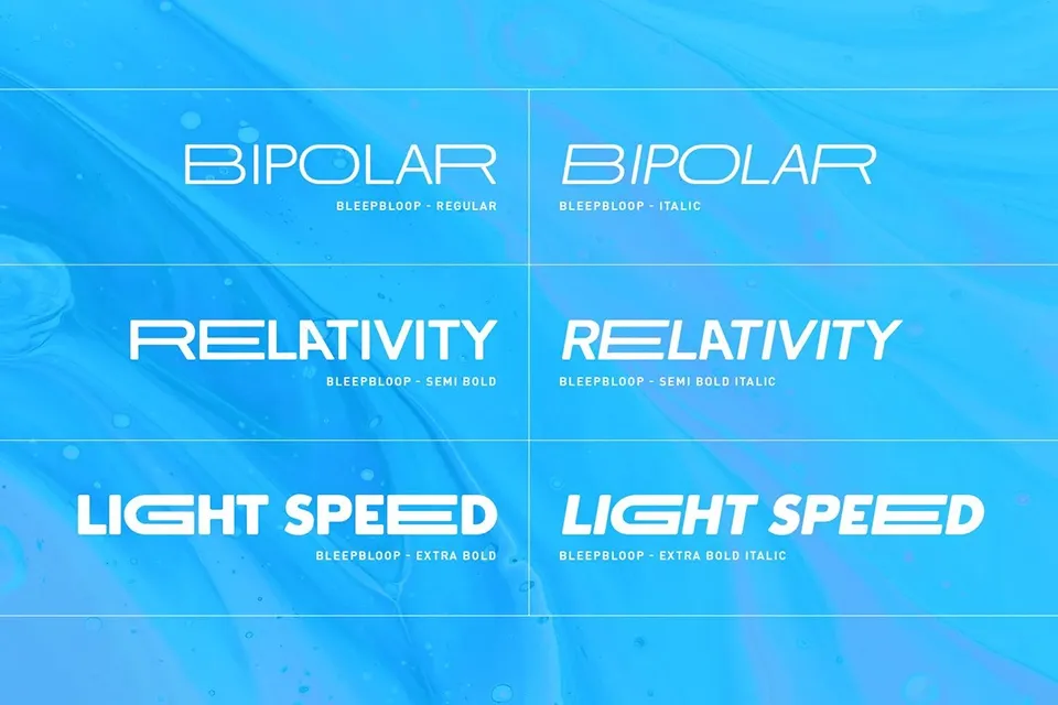 Bleep Bloop Font is a modern, bubbly width-variable display typeface featuring slightly rounded edges, thick anatomy, and a wide range of alternate glyphs. With multiple width varieties for most characters, this font allows you to experiment and create dynamic, eye-catching typography for logos, branding, invitations, social media posts, packaging, and more. The free version includes an extra bold, all-uppercase style, while the full version unlocks all six font styles and additional features.