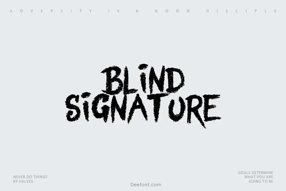 Blind Signature is a distinctive distressed script font characterized by its intentionally damaged and defaced letterforms, creating an authentic grunge aesthetic. Each letter carries visible imperfections and weathered textures that evoke a raw, urban sensibility ideal for making bold statements. The font’s broken, trash-influenced design excels at capturing attention in poster design, album artwork, and unconventional logo projects. Its decorative nature makes it particularly effective for headlines and display applications where personality and edge matter more than formal readability. The uppercase-dominant character set and layered stroke characteristics provide designers with a distinctive tool for creating visually arresting compositions that command viewer attention.