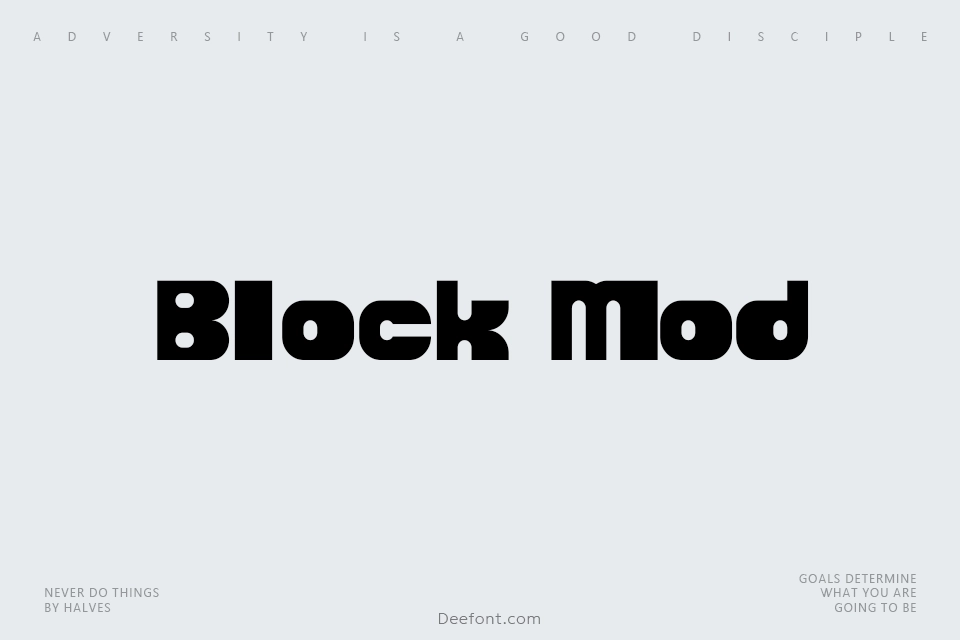 Block Mod is a bold, geometric typeface inspired by vintage mid-20th century design. With its distinctive thick strokes, clean block-like structure, and high readability, this retro-modern font combines nostalgic charm with contemporary appeal. Perfect for logos, posters, packaging, and display projects, Block Mod delivers striking visual impact across various creative applications. The font’s consistent spacing and sharp geometric edges ensure professional results while maintaining its playful, energetic character that captures the spirit of 1970s and 1980s design trends.