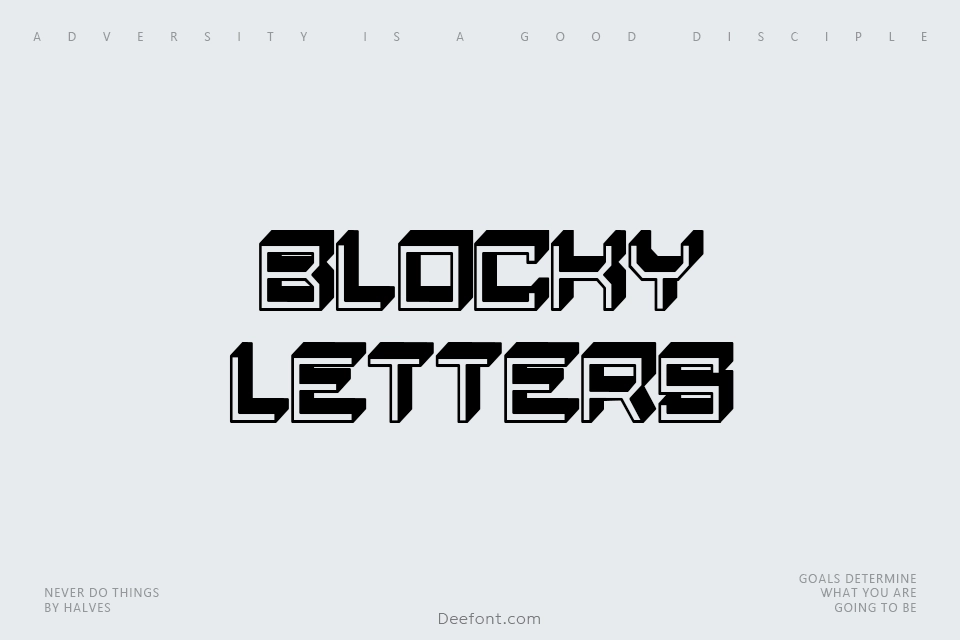 Blocky Letters is a bold, geometric 3D display font featuring thick, squared letterforms that deliver strong visual impact. Created by Vladimir Nikolic in 2018, this typeface excels at grabbing attention in headlines, posters, and branding applications. With its futuristic aesthetic and crisp edges, the font comes in three versatile variants: standard, inverted, and hollow styles. Perfect for modern design projects requiring a striking, contemporary look with excellent readability across all sizes.